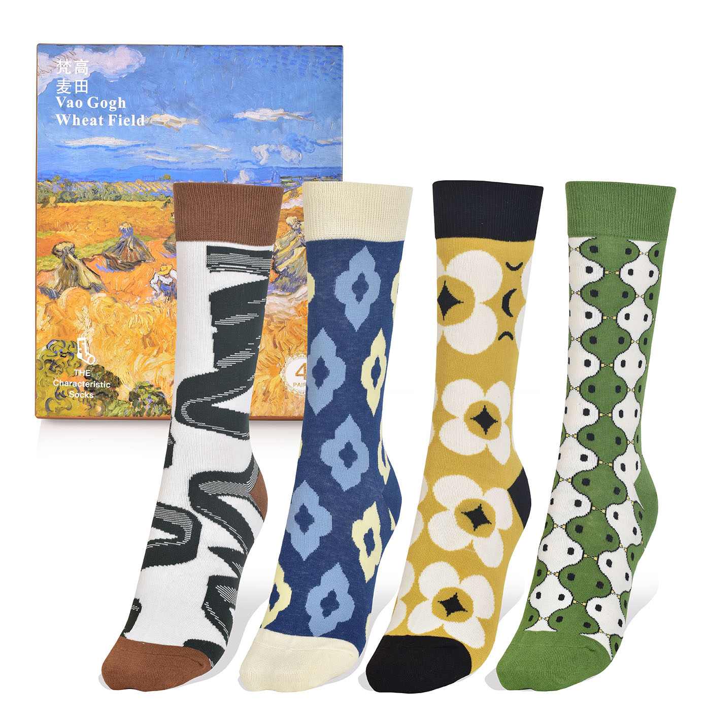 Medias de Van Gogh, Campos de Trigo con Cipreses, en Caja de 4 Pares.