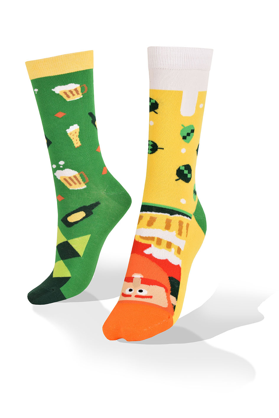Medias Aves del Plata™ Panceta y Huevo Frito, Desayuno Americano en Fondo Celeste y Elástico Beige.
