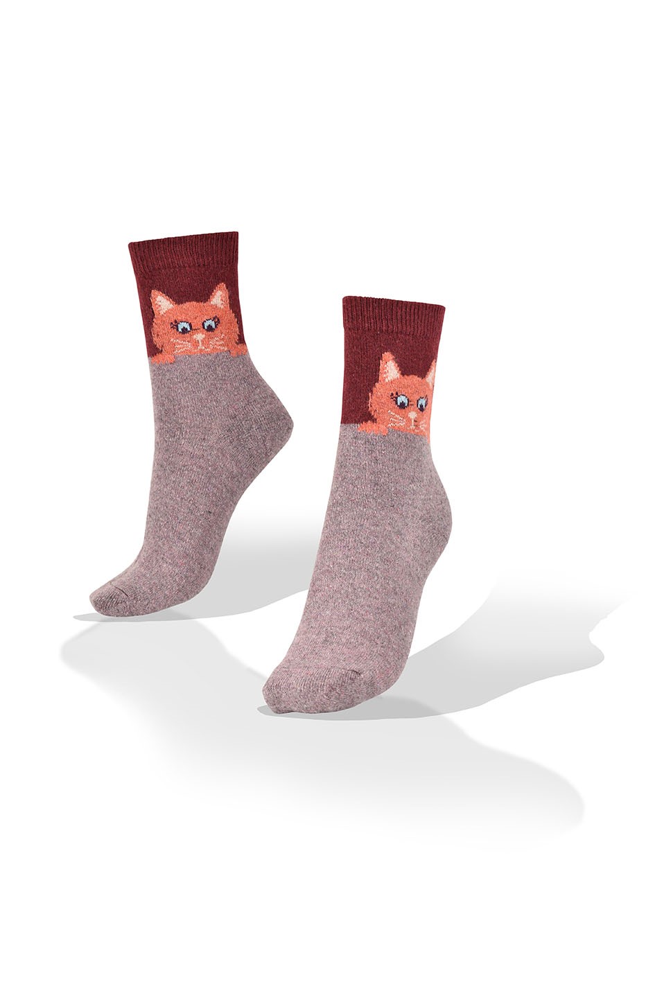 Medias Gato Marron que Espia en Fondo Salmon Aves del Plata™