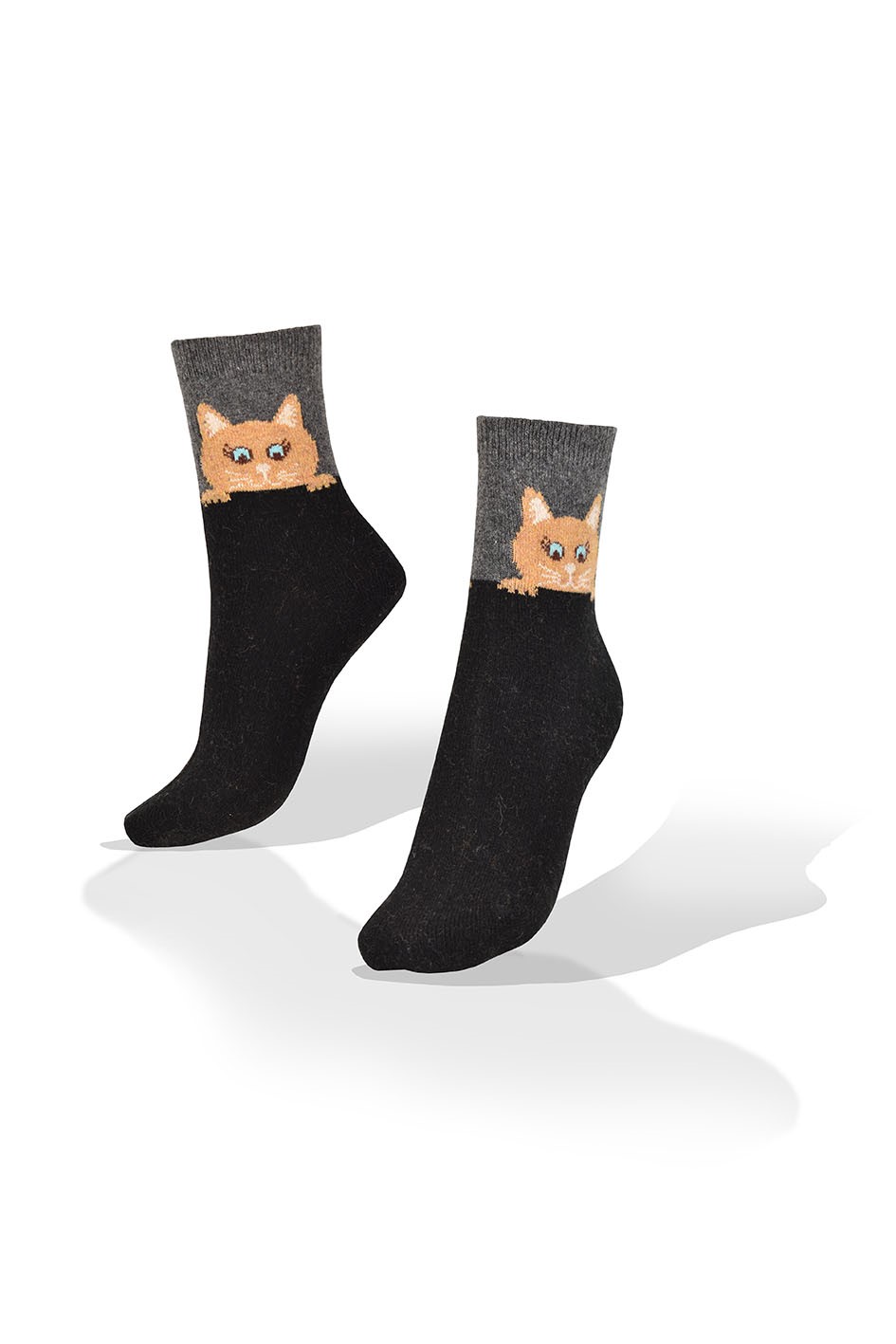 Medias Gato Anaranjado que Espía en Fondo Negro Aves del Plata™
