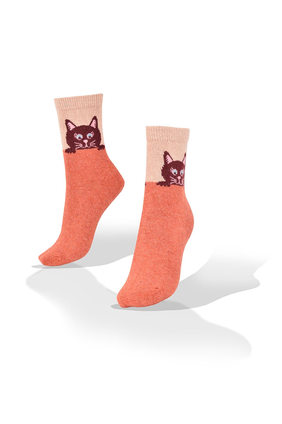 Medias Gato Marron que Espia en Fondo Salmon Aves del Plata™