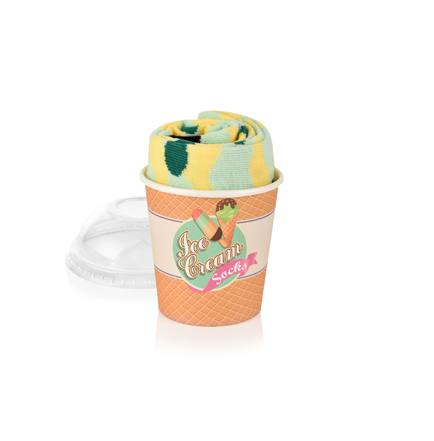 Sorprende a tus amigos con un regalo divertido: unas medias en un pote de helado.