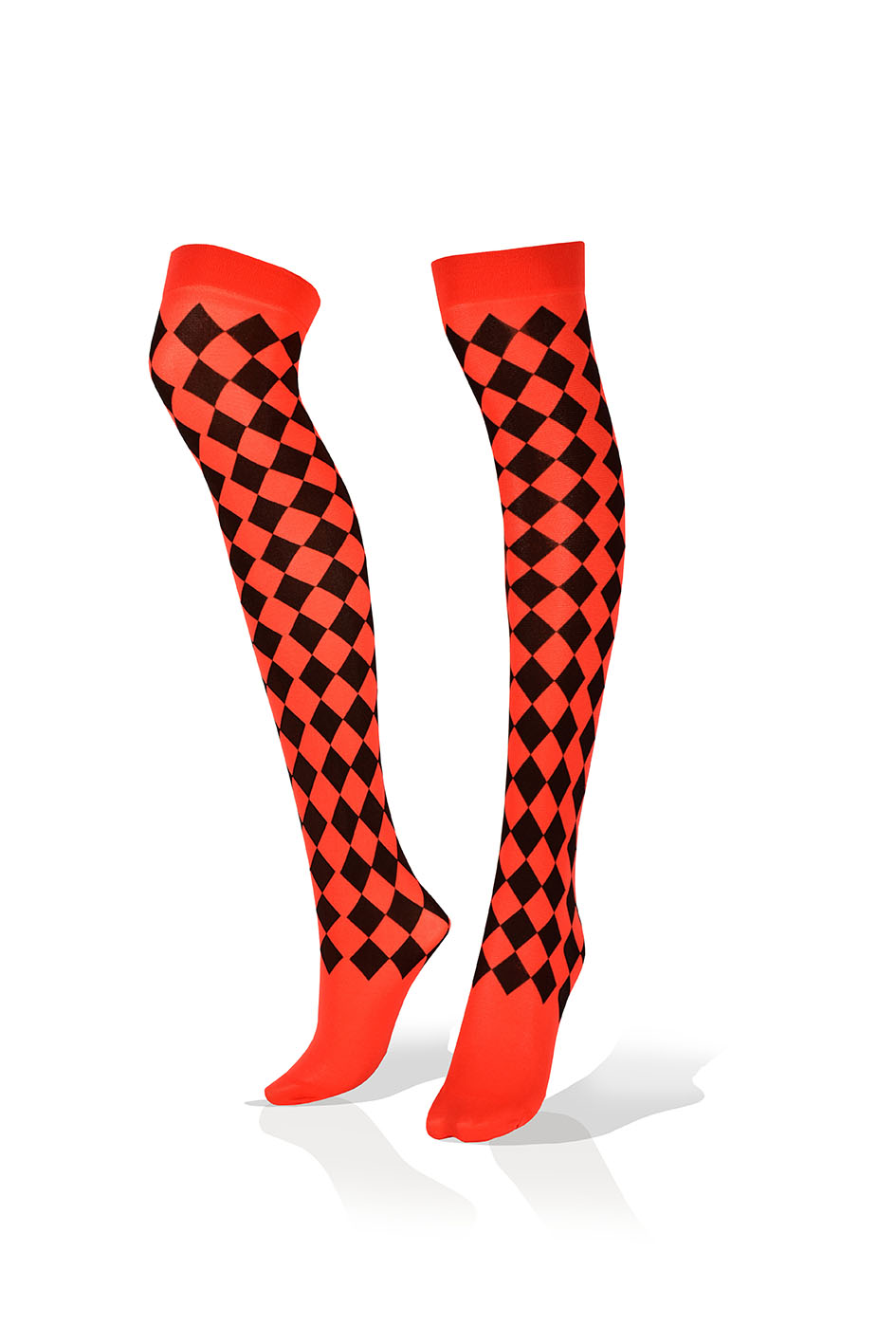 Medias Largas Altas Con Rombos en Rojo y Negro