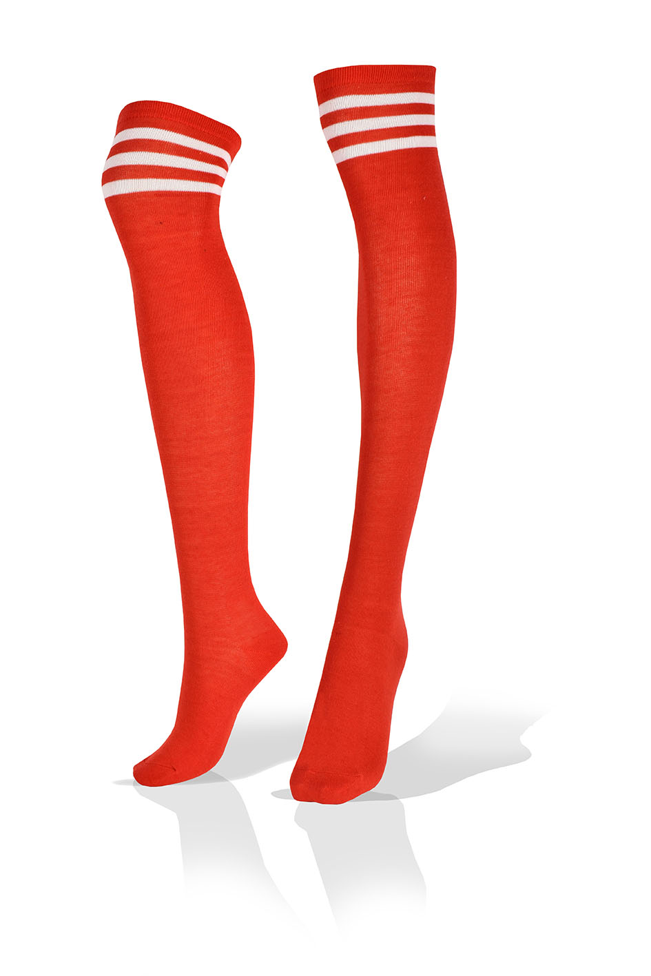 Medias Largas Altas Dama en Rojo con 3 Rayas