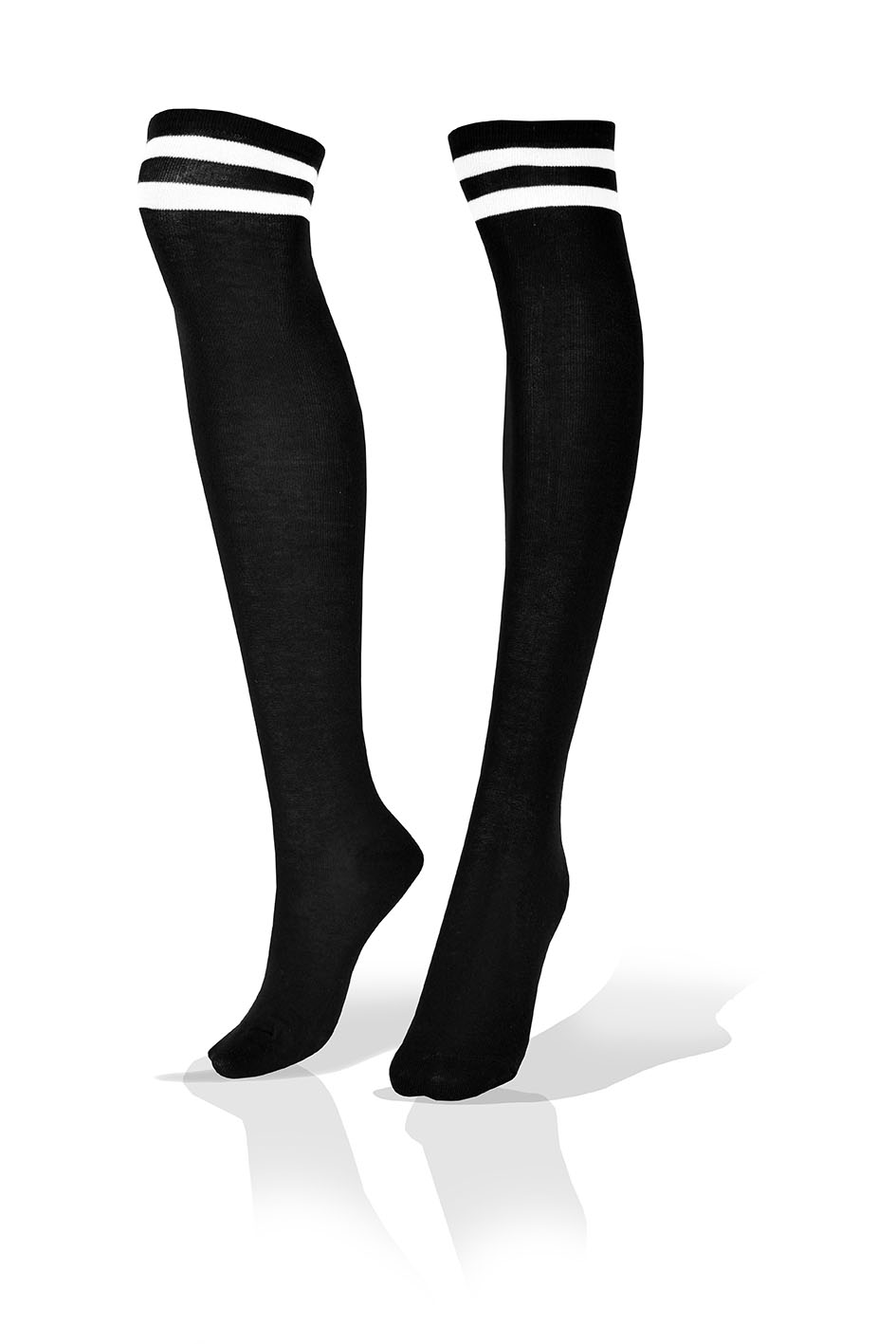Medias Largas Altas Dama en Negro con 2 Rayas Blancas