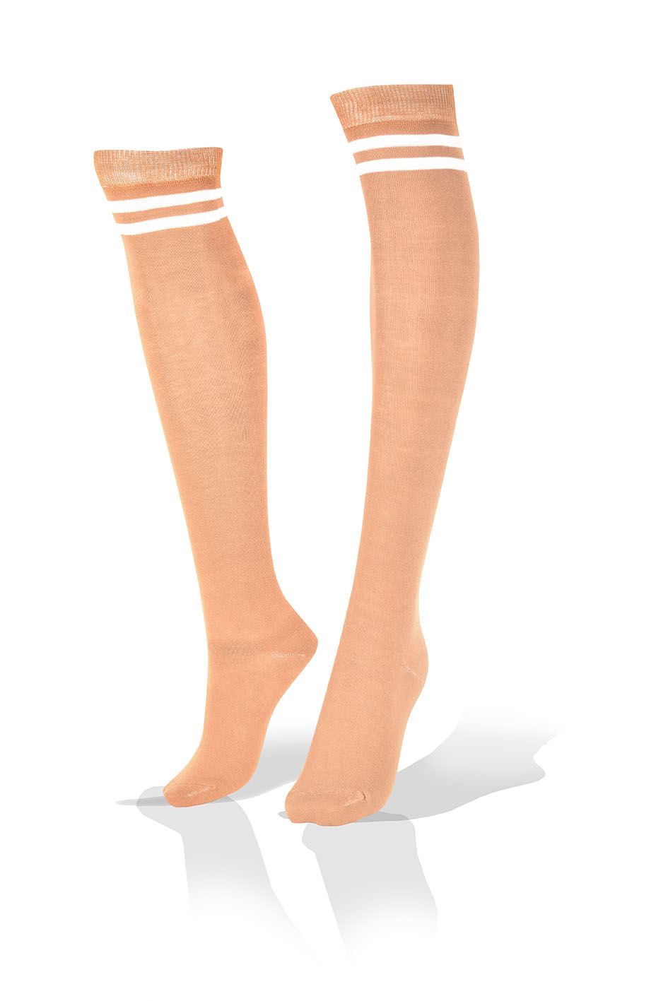 Medias Largas Altas en Beige Terracota con 2 Rayas