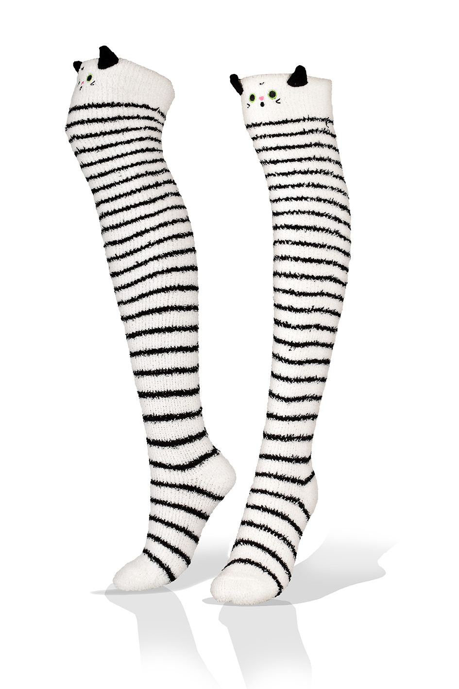 Medias Largas Altas Peludas Rayas Blanco y Negro Aves del Plata™
