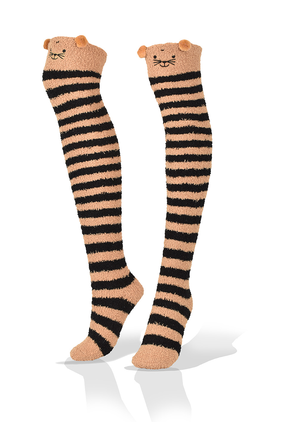 Medias Largas Altas Peludas Marron con Rayas Negras Aves del Plata