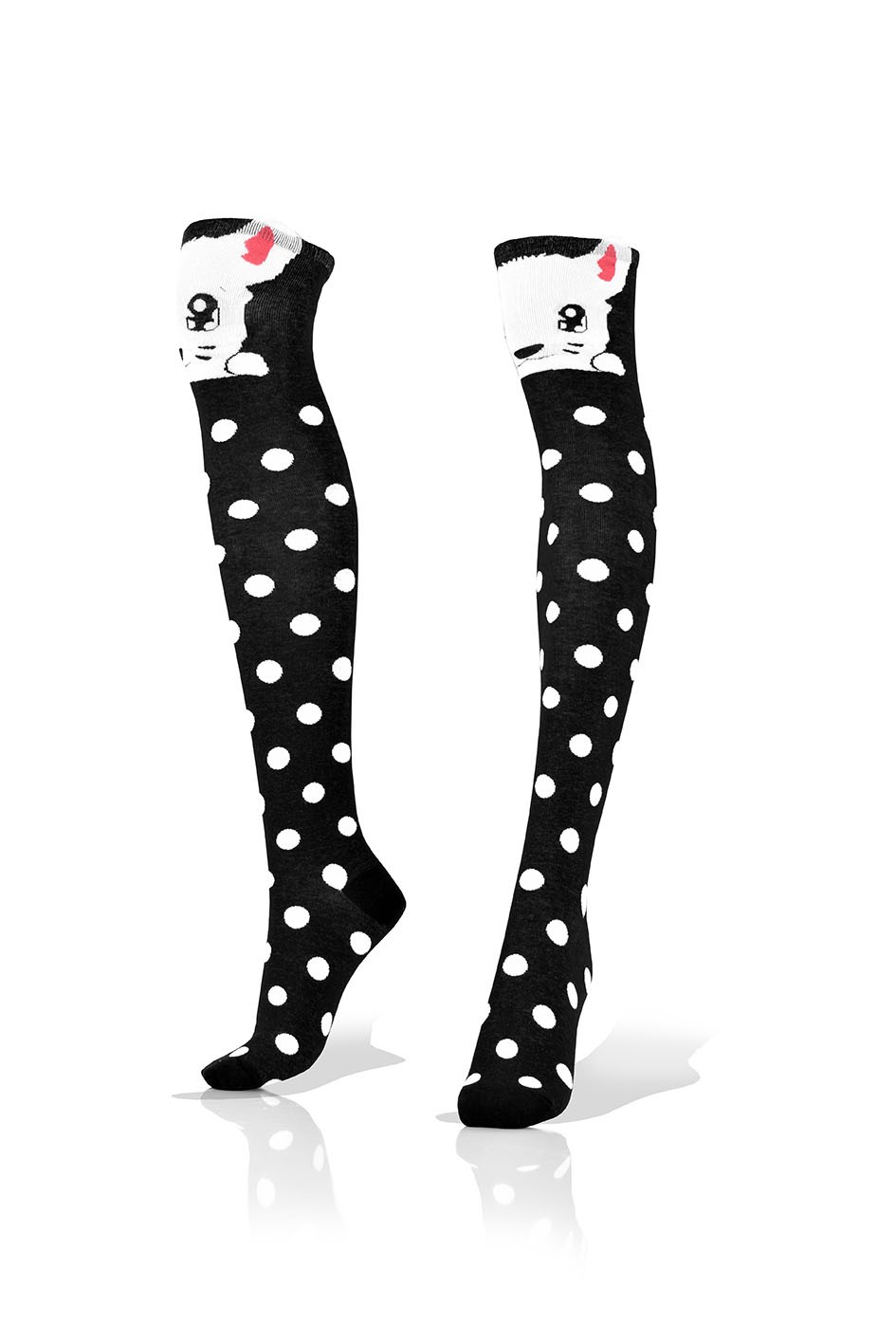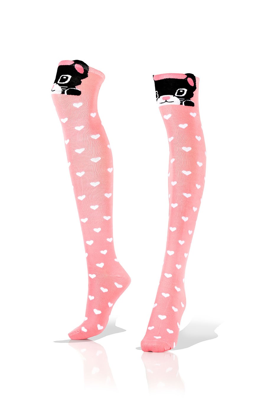 Medias Largas Altas Gatito Negro Fondo Rosa con Pintitas