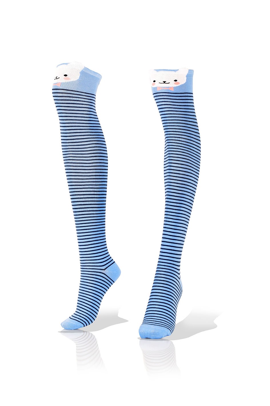 Medias Largas Altas Conejito Blanco en Fondo Rayado Celeste Aves del Plata™