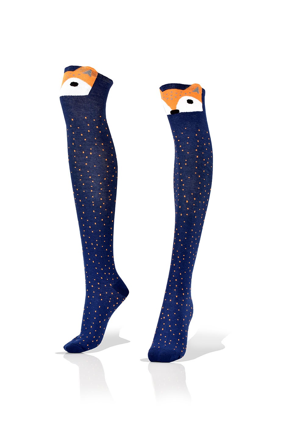 Medias Largas Altas con Zorro en Fondo Azul Marino con Pintitas Aves del Plata™
