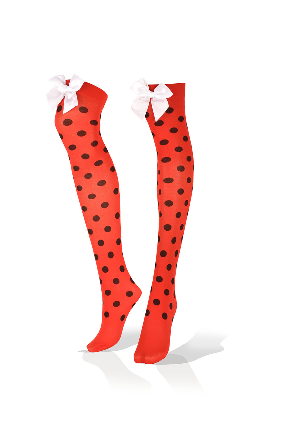 Medias Largas Altas Rojas con Pintitas Negras y Moña