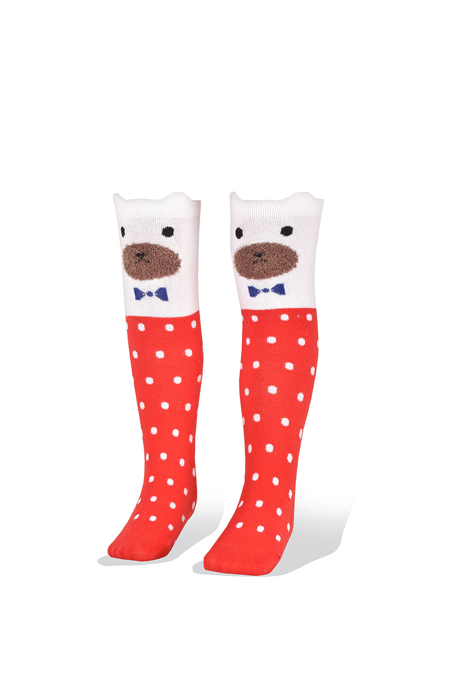 Medias Niña Largas Altas Oso Fondo Rojo con Pintitas Blancas