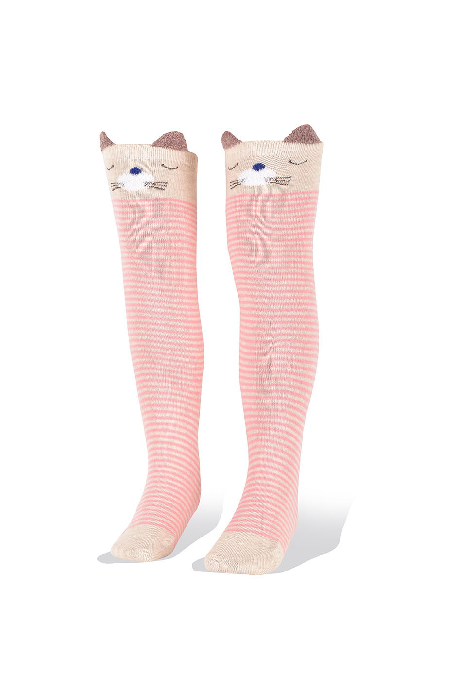 Medias de Niñas Largas Altas Gato Fondo Rosa