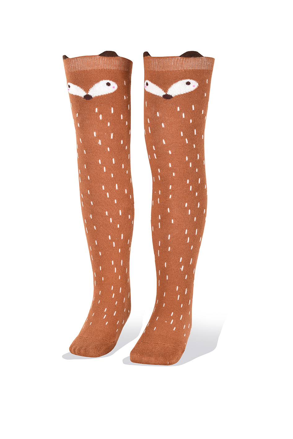 Medias Niñas Largas Altas con Zorro en Fondo Cobre con Pintitas