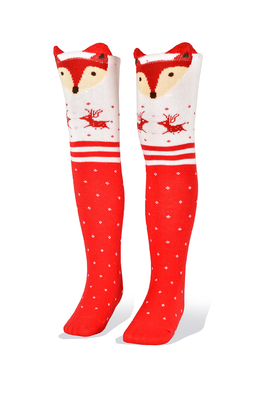 Medias Niñas Largas Altas Zorro Fondo Rojo