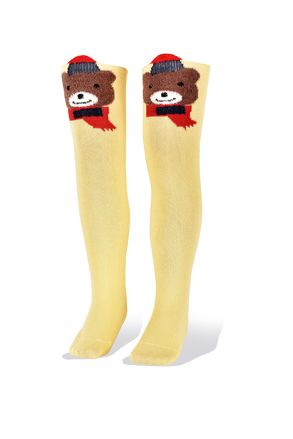 Medias Niñas Largas Altas Oso en Fondo Amarillo