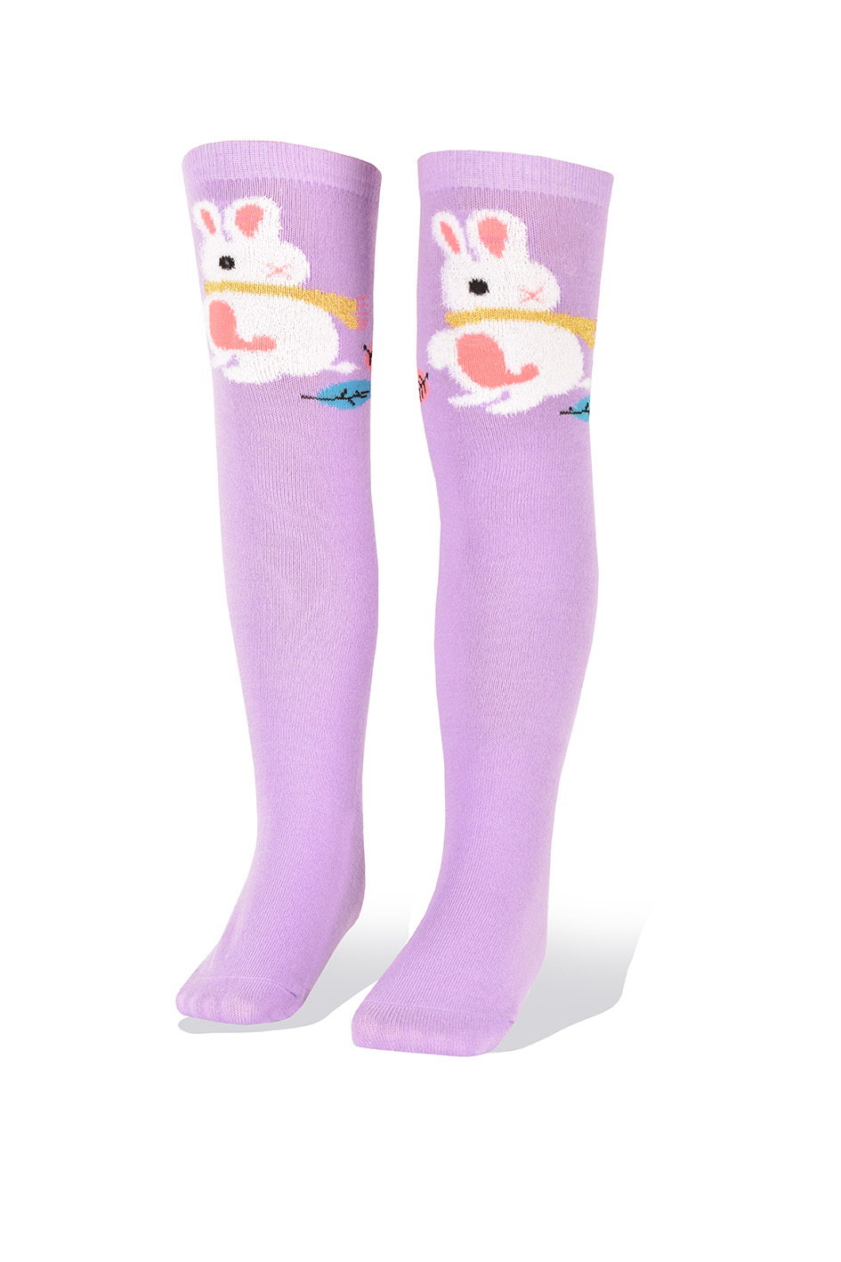 Medias Niñas Largas Altas Conejo Blanco en Fondo Violeta