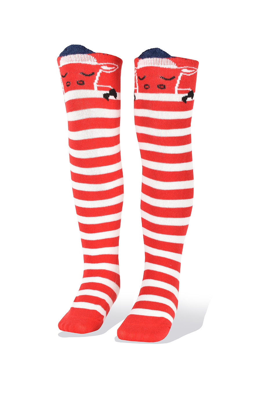 Medias Niñas Largas Altas Ovejas Fondo Rayas Blanco y Rojo