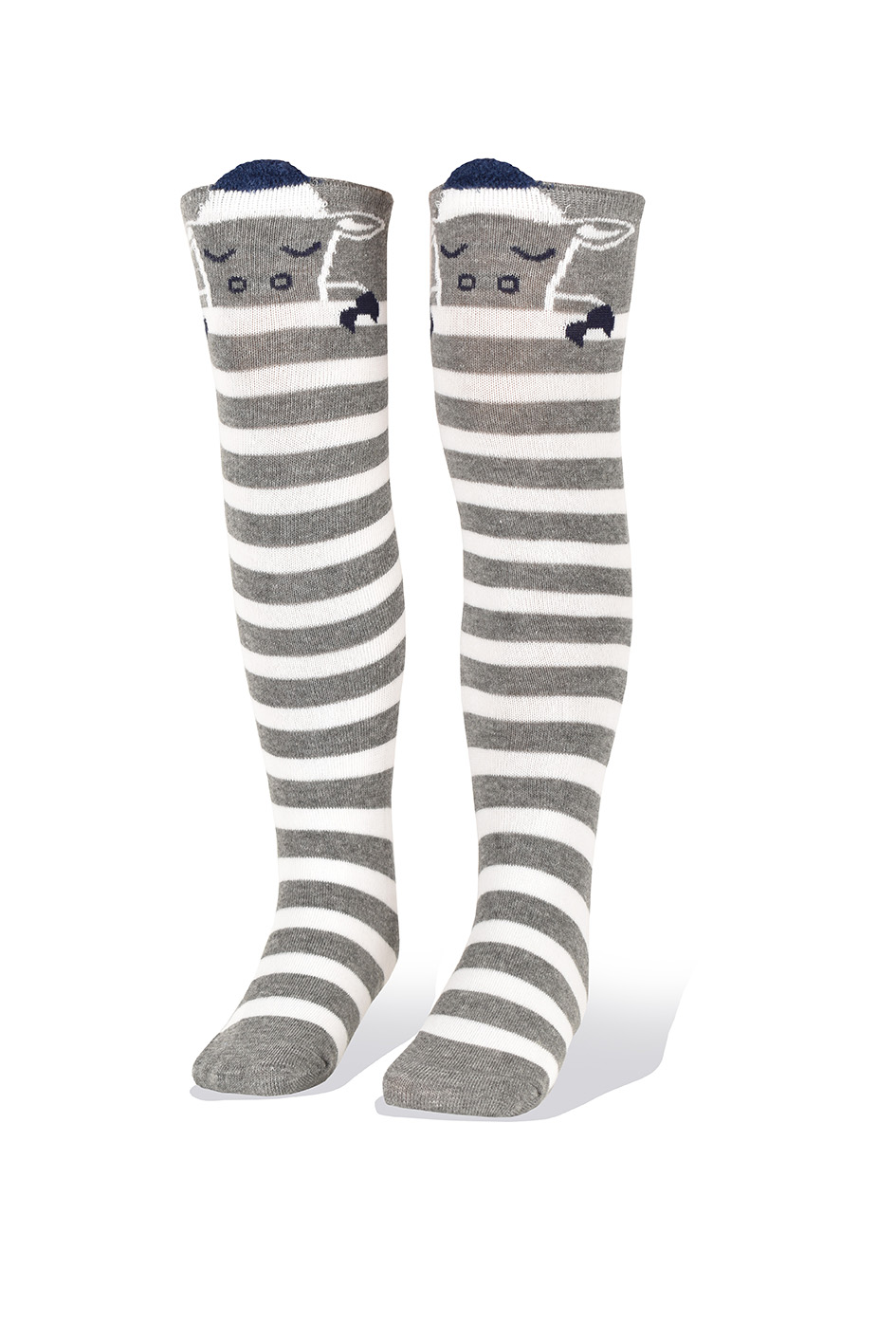 Medias Niñas Largas Altas Oveja con Rayas Gris y Blanco