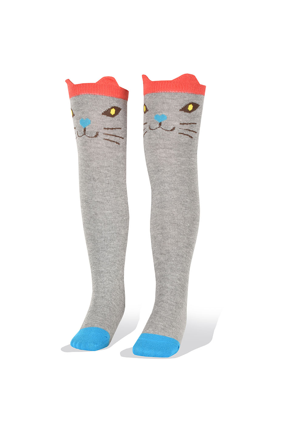 Medias Niñas Largas Altas Gato Gris borde Anaranjado