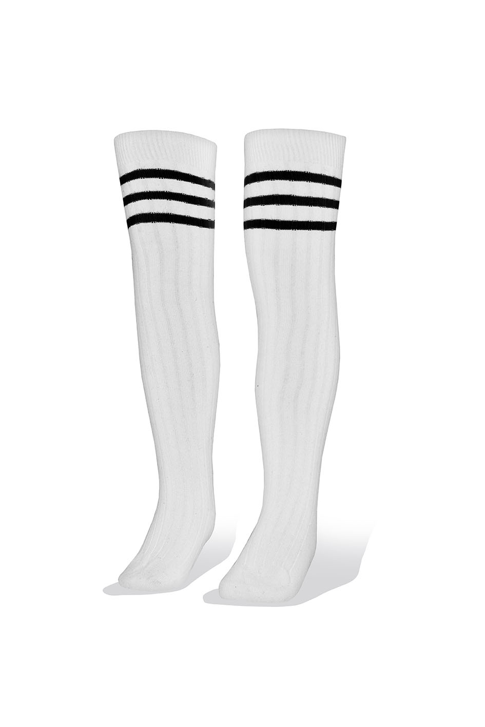 Medias Niñas Largas Altas Blancas con Rayas Negro y Blanco