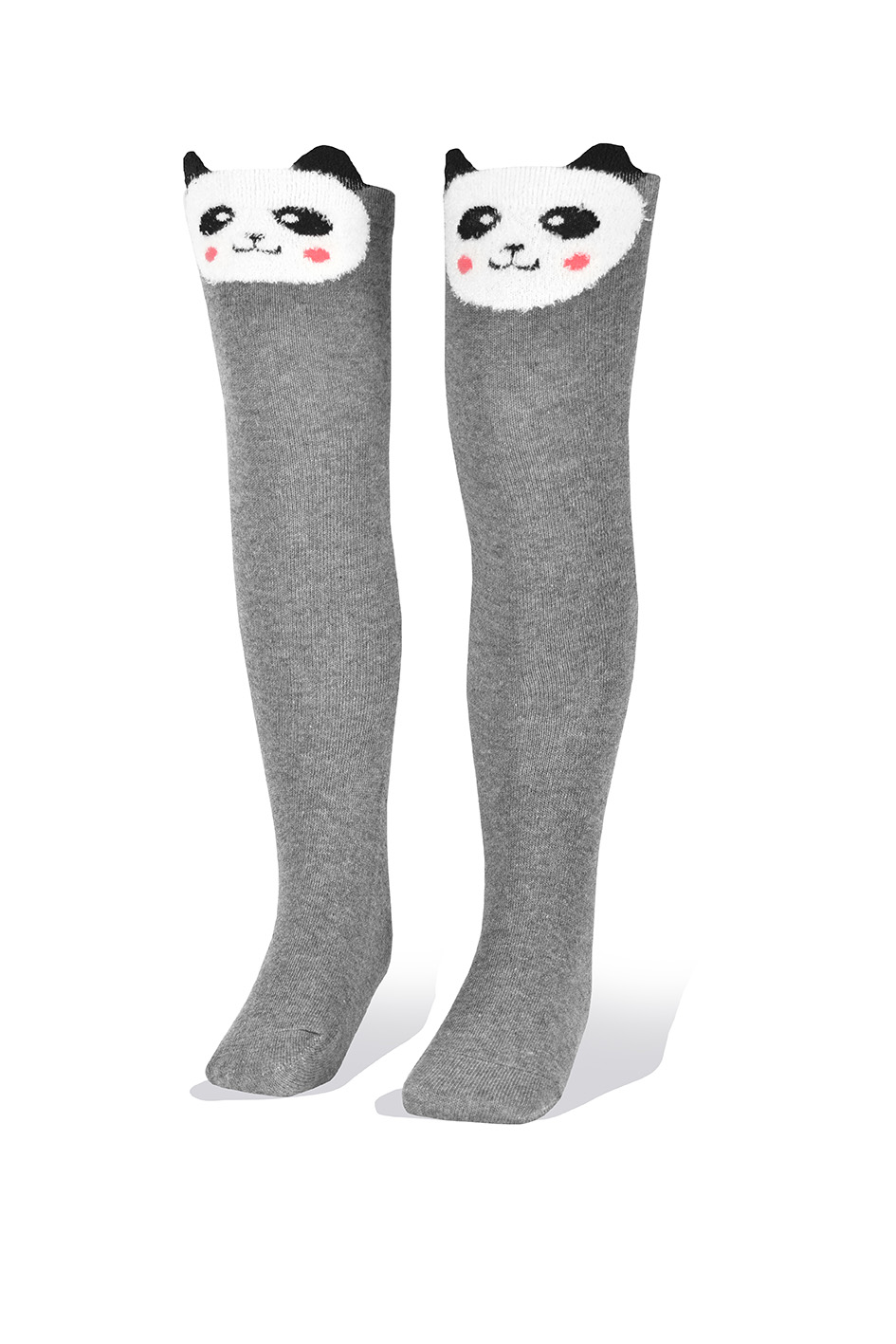 Medias Niñas Largas Altas Zorro en Fondo Gris con Pintitas