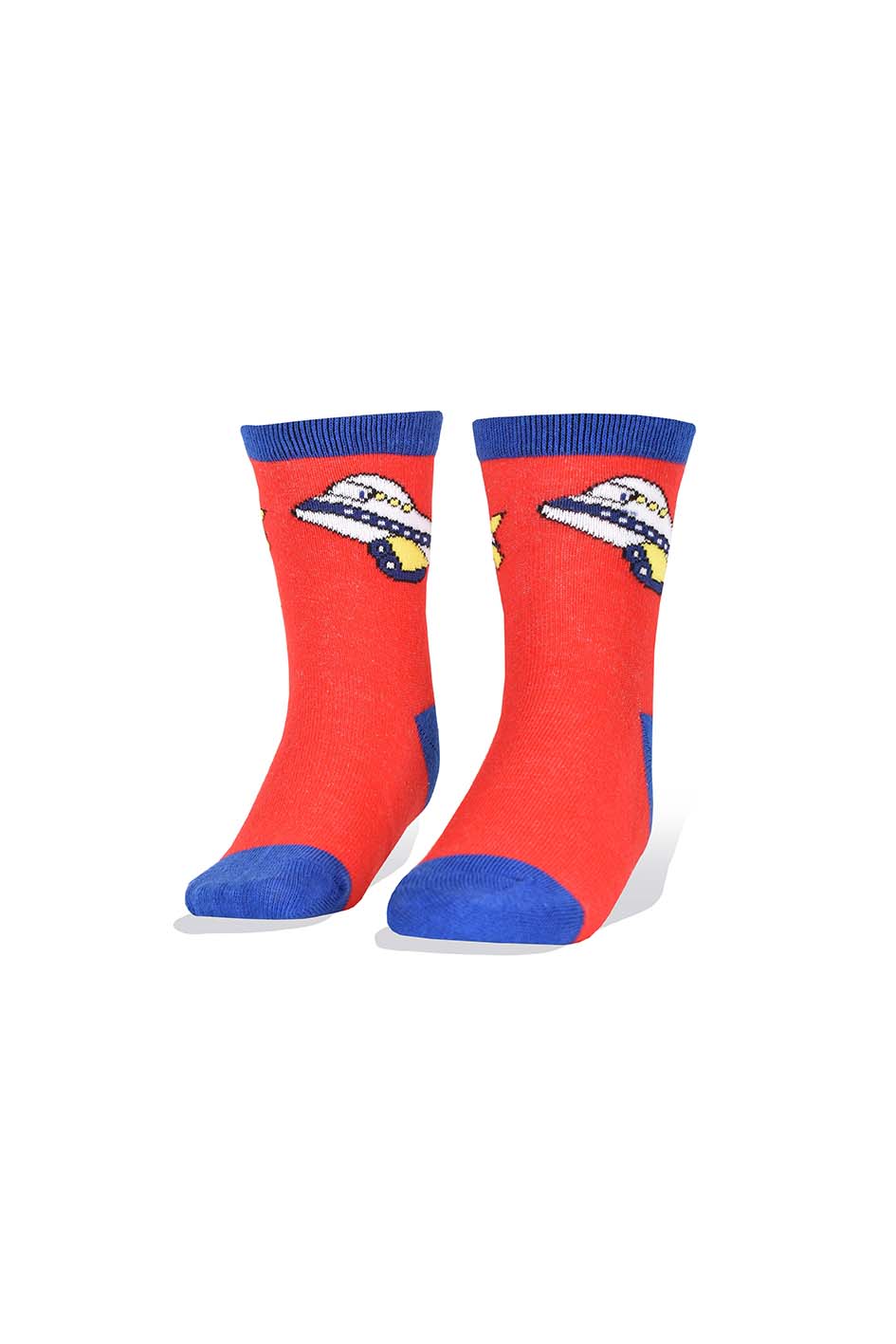Medias Aves del Plata™ Cohete Nave Espacial y Planetas Fondo Azul y Beige, Elástico Mostaza.