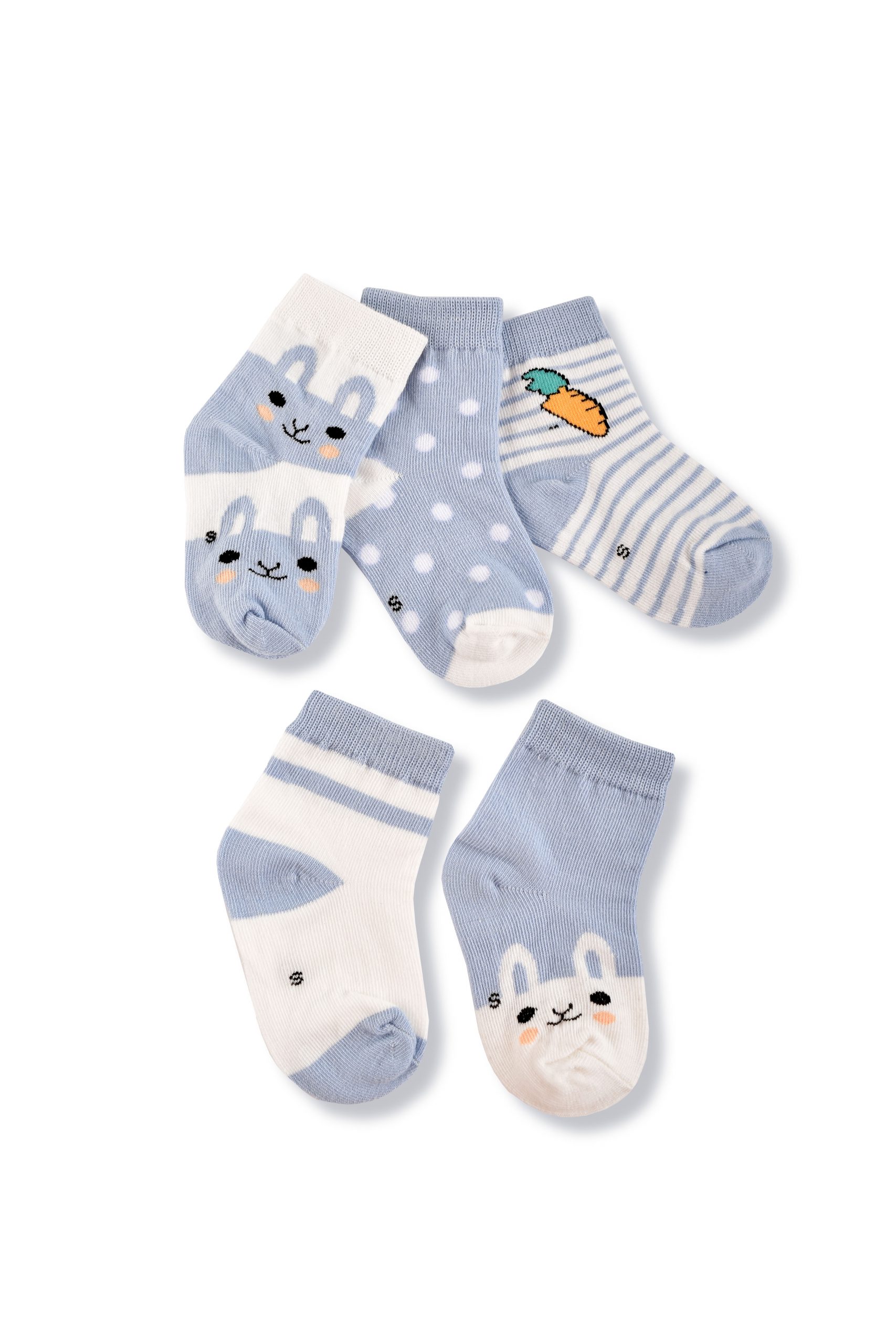 Medias Aves del Plata™ Panceta y Huevo Frito, Desayuno Americano en Fondo Celeste y Elástico Beige.
