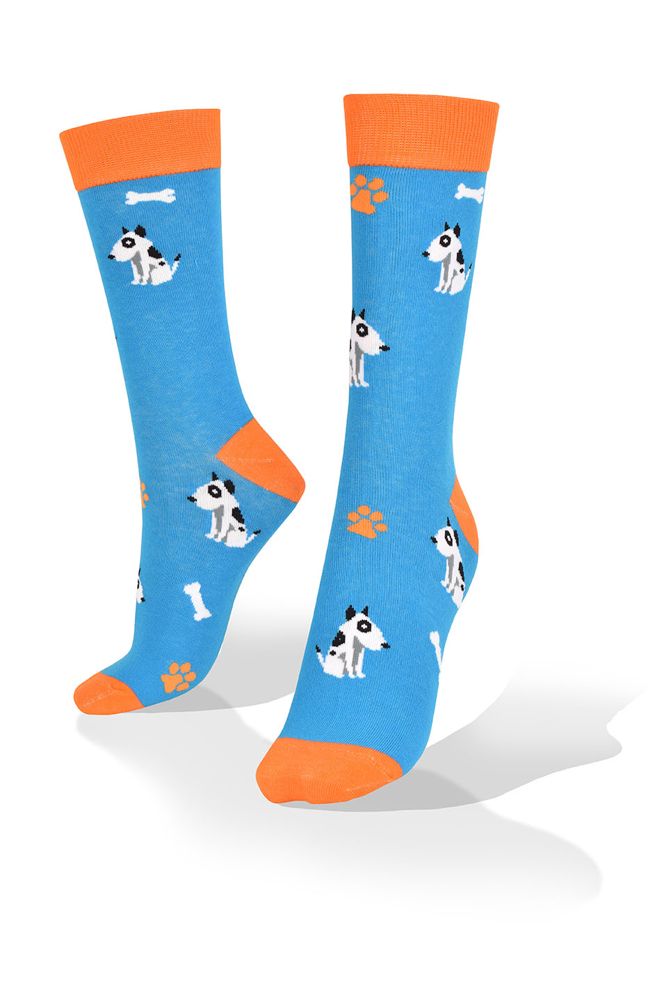 Medias Perro Pitbull fondo turquesa borde anaranjado