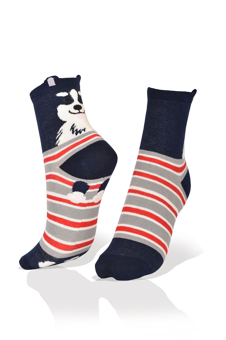 Medias con Perro Blanco y Gris atrás y Huellas Aves del Plata™
