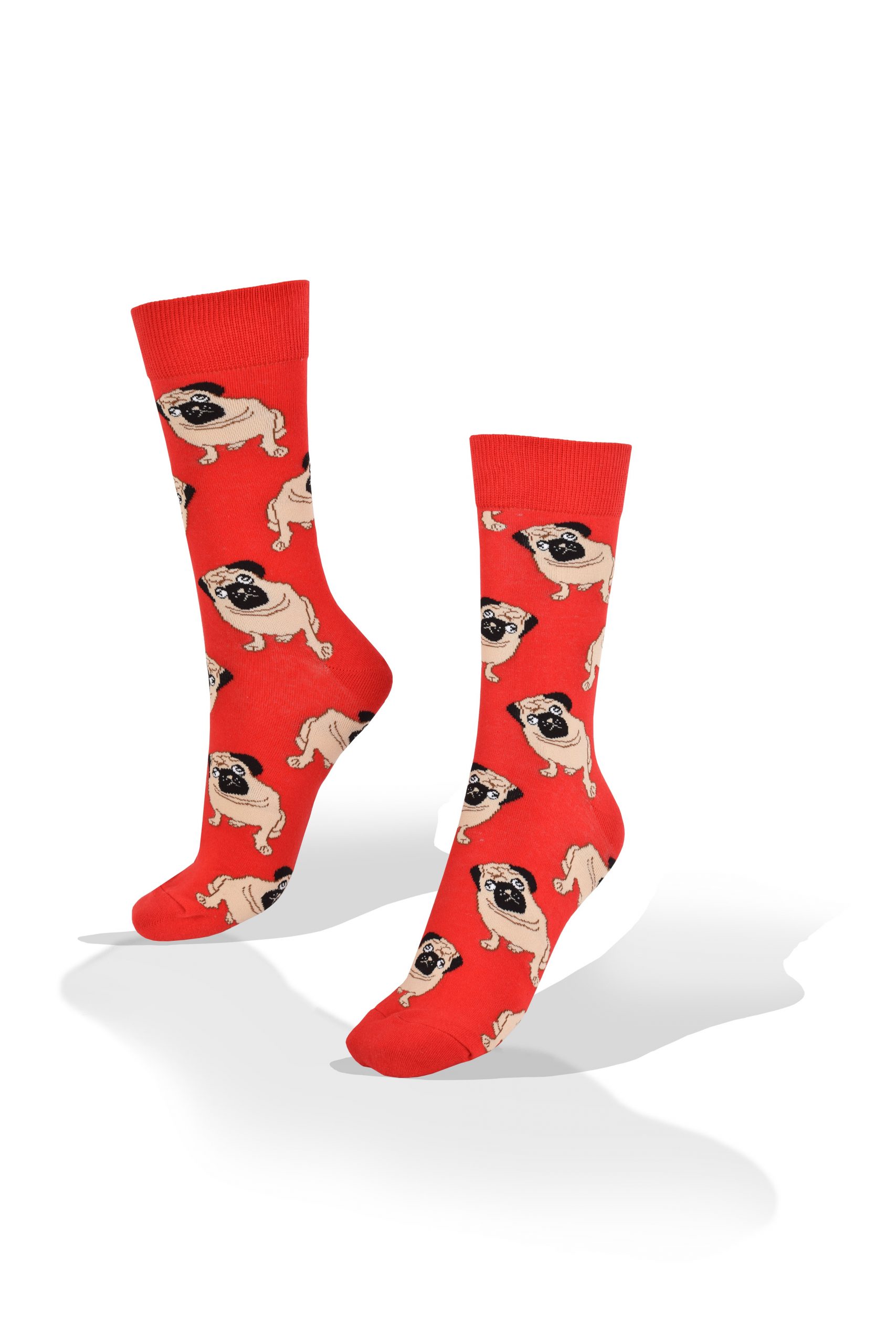 Medias Aves del Plata™ Perro Pug en Fondo Rojo