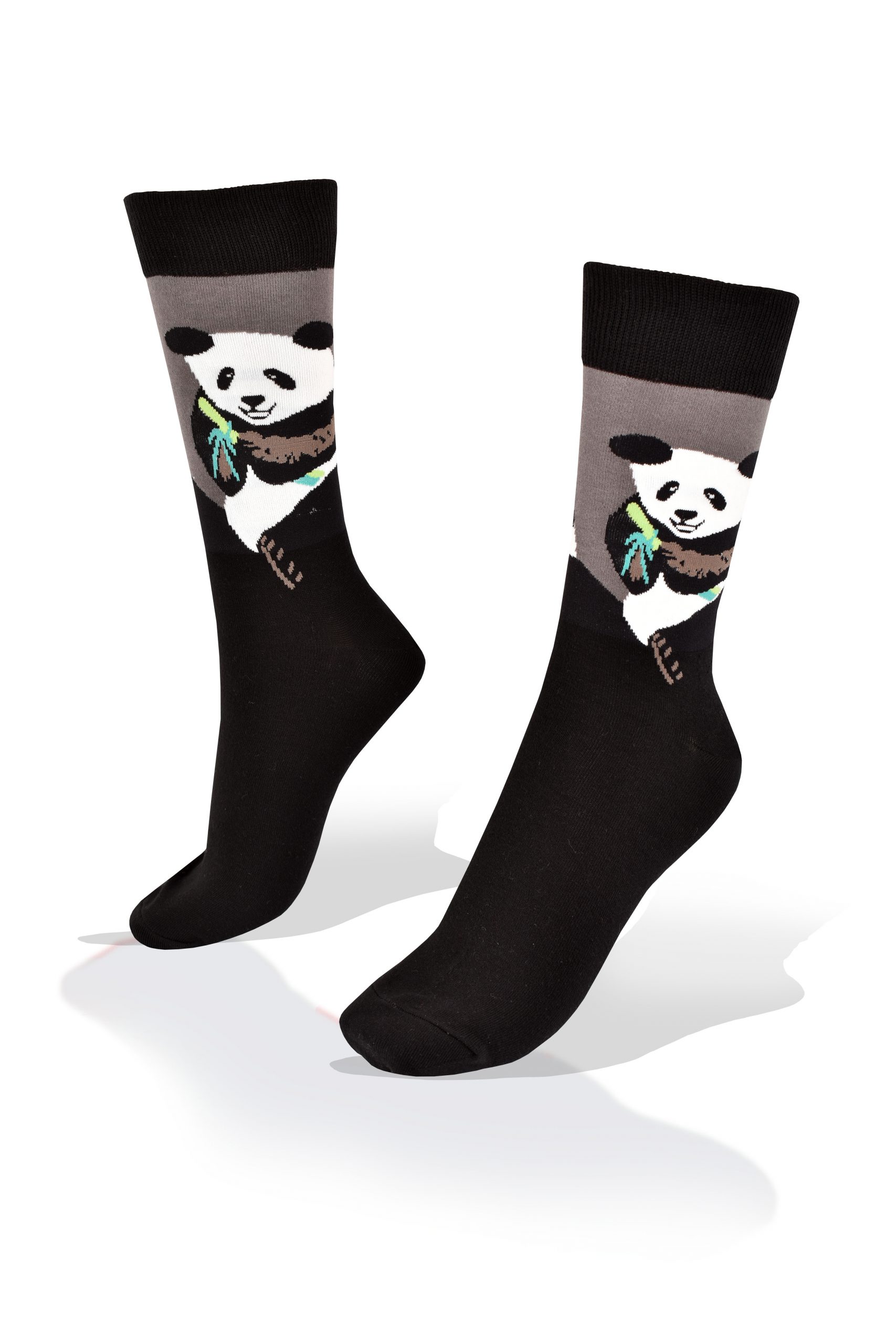 Medias Aves del Plata™ Oso Panda Blanco y Negro Fondo Negro.