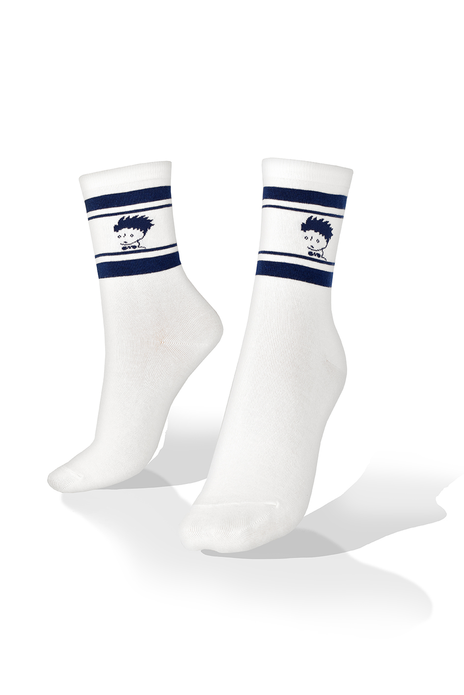 Medias Aves del Plata™ Ovejas Fondo Celeste, Talón y Tobillo Azul.