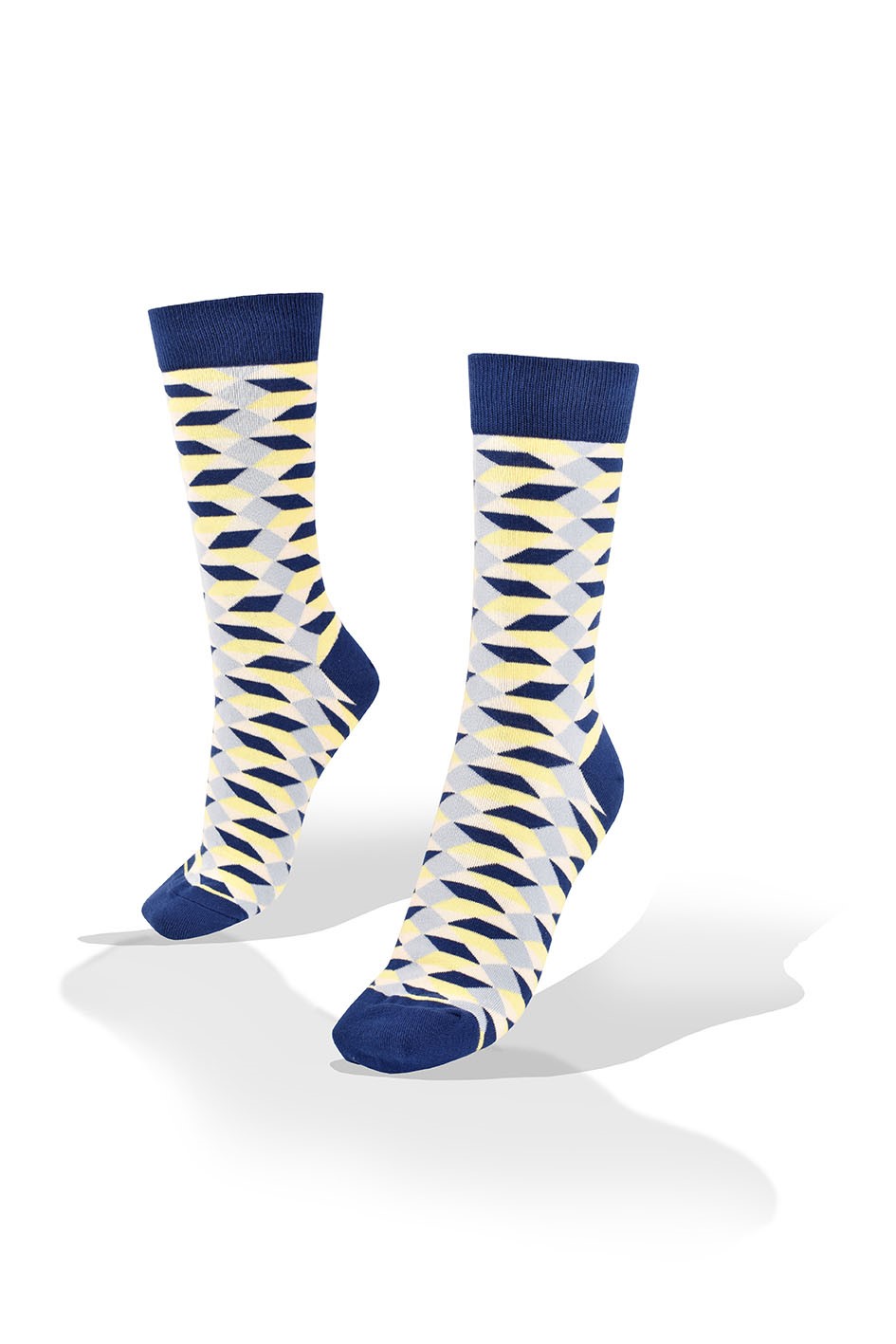 Medias Rectangulos Geometricos en Azul, Amarillo y Gris Aves del Plata™