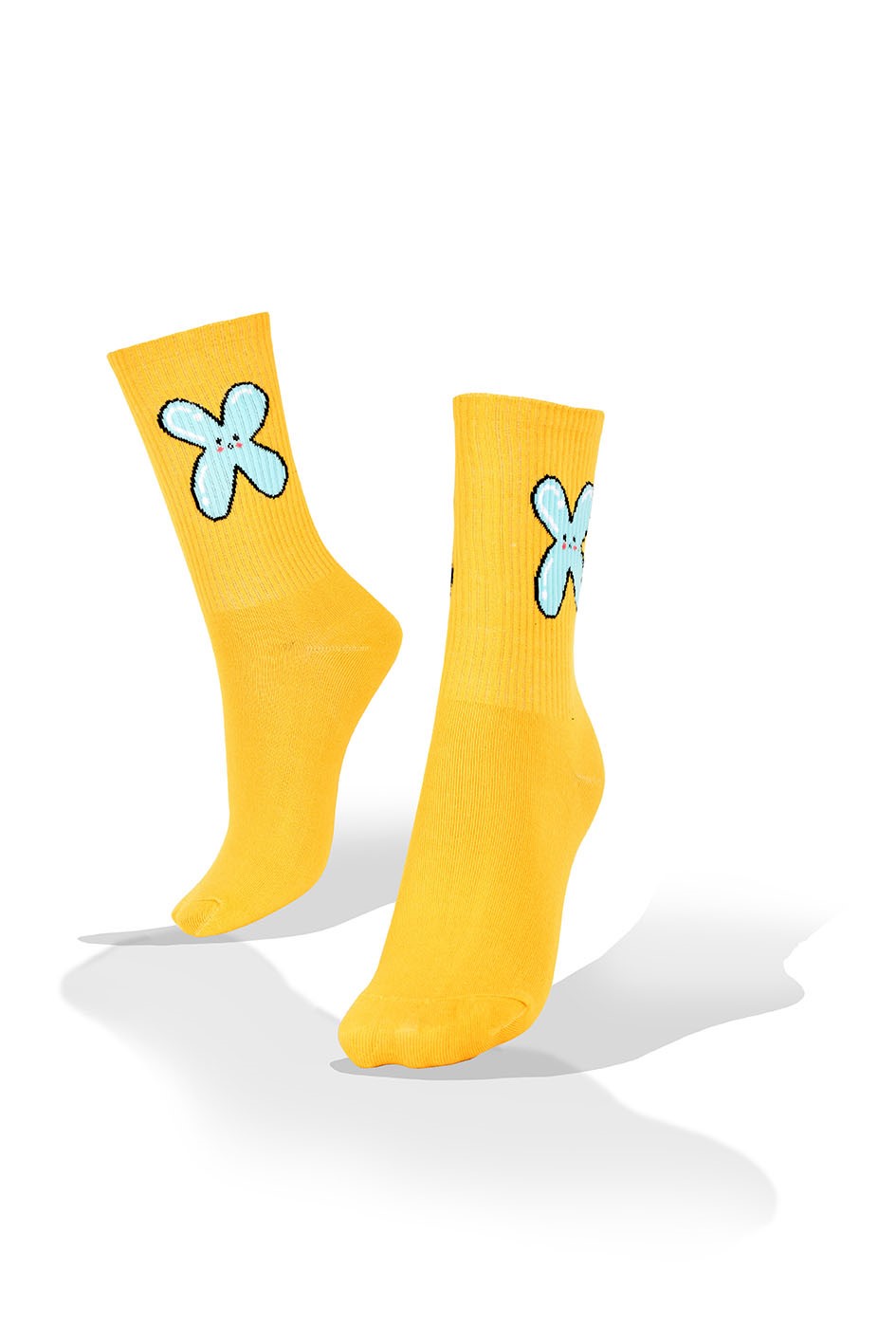 Medias Aves del Plata™ Flamencos Rosa en Fondo Celeste, Talon y Elastico Mostaza