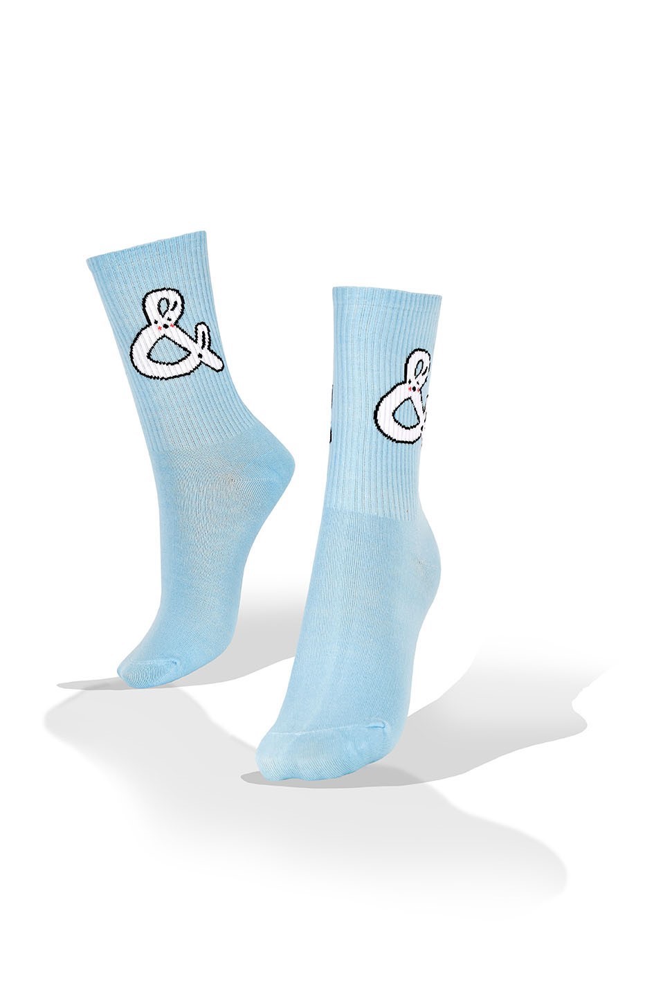 Medias Aves del Plata™ Ovejas Fondo Celeste, Talón y Tobillo Azul.