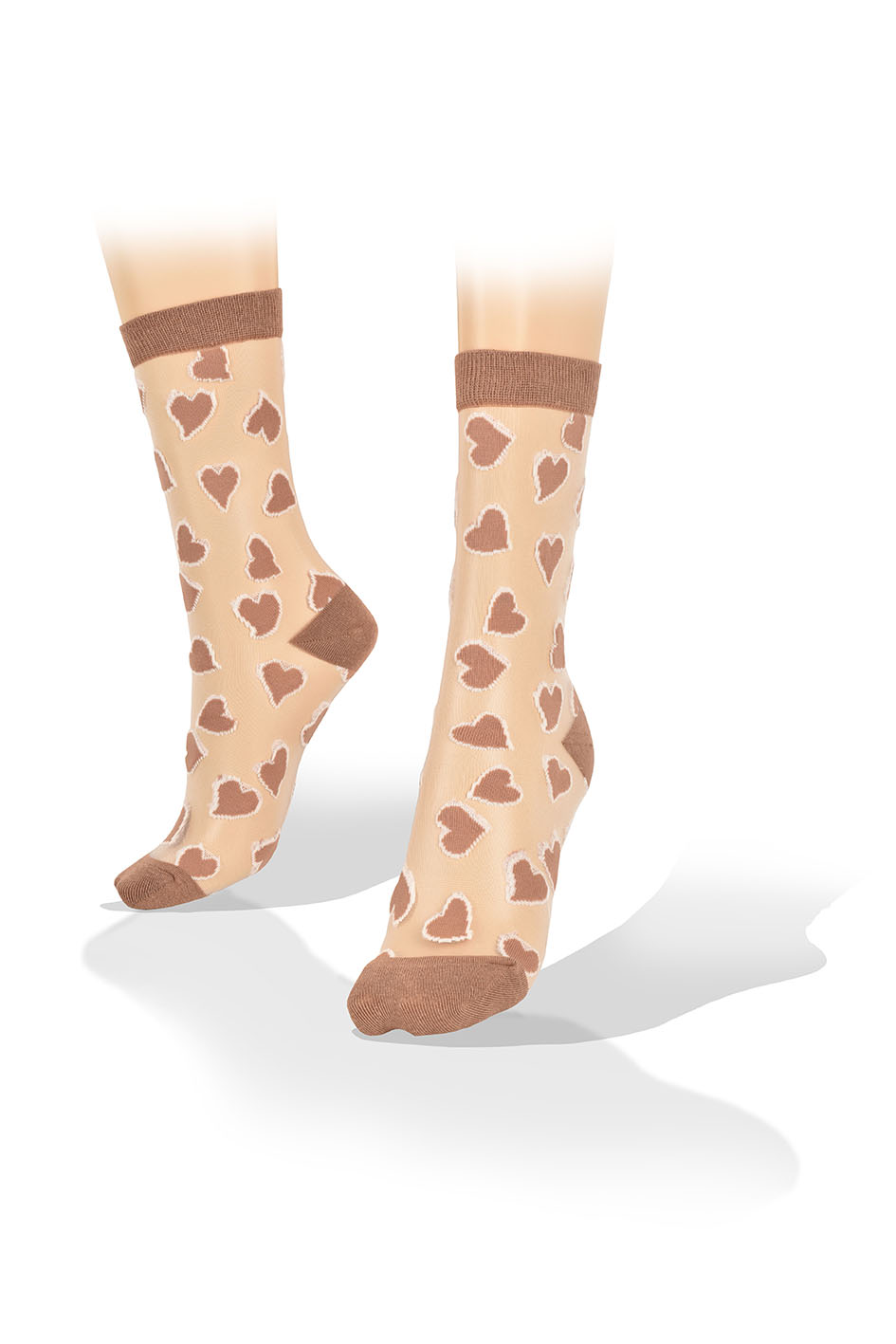 Medias Transparentes con Corazones Beige y Bordes Beige