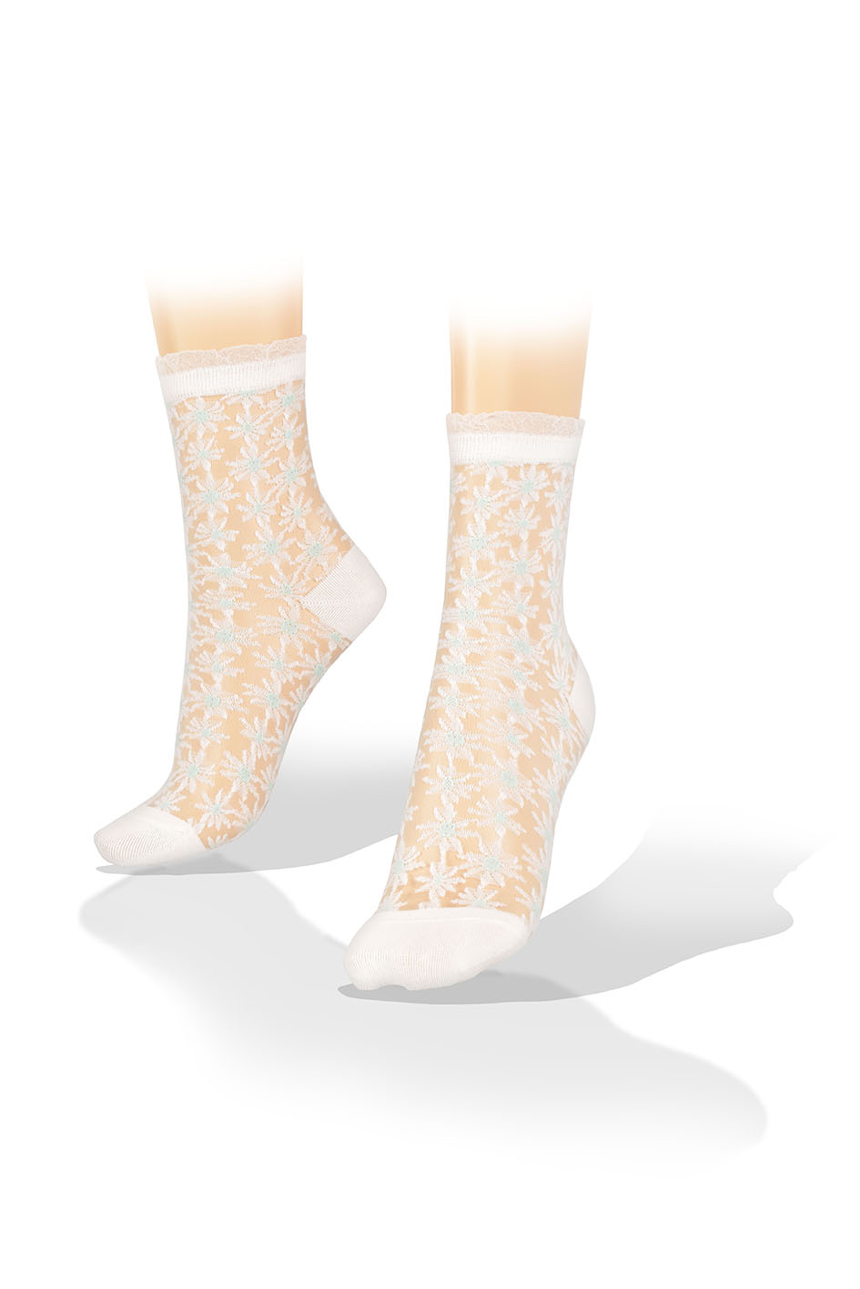 Medias Transparentes con Flores Estrelladas Blancas y Borde Blanco