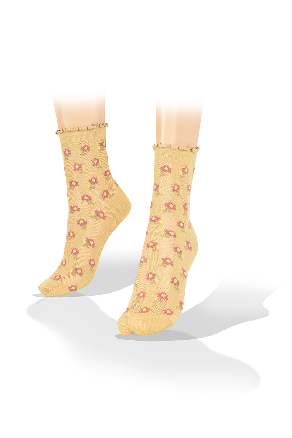 Medias Transparentes con Flores en Fondo Beige Aves del Plata™