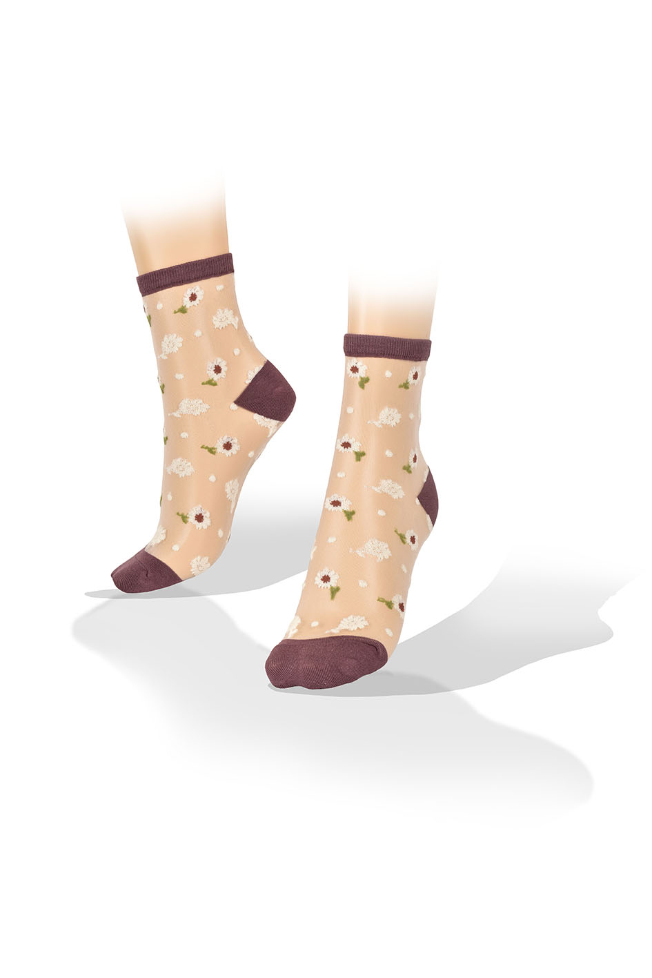 Medias Transparentes con Margaritas Borde Violeta Aves del Plata™