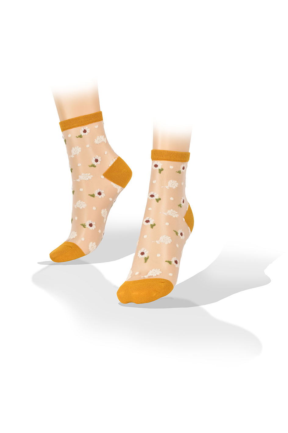 Medias Transparentes con Margaritas Fondo Mostaza Aves del Plata™