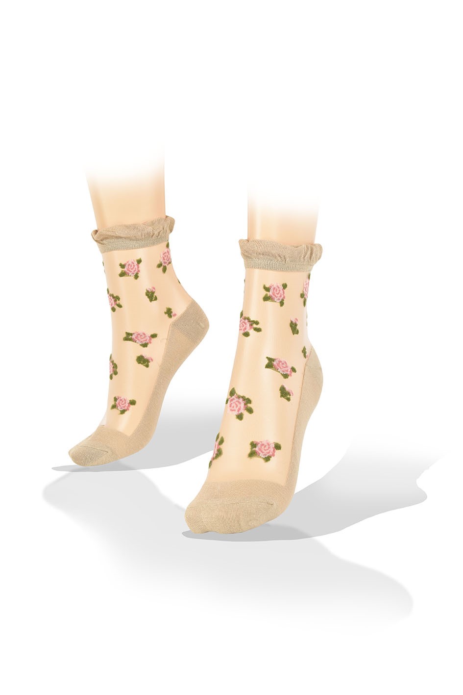 Medias Transparentes con Rosas y Borde Beige Aves del Plata™