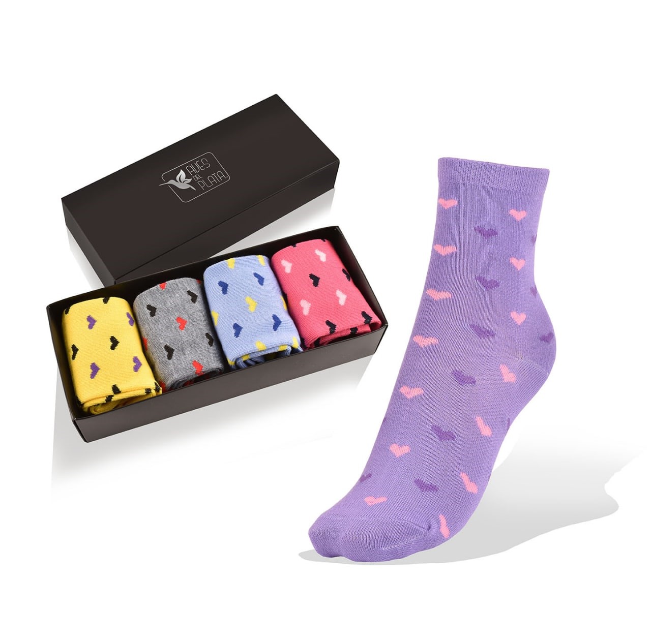 Medias Aves del Plata™ Caja 5 Pares de Medias en Rosado, Amarillo, Gris, Celeste y Violeta Con Corazones de Colores.