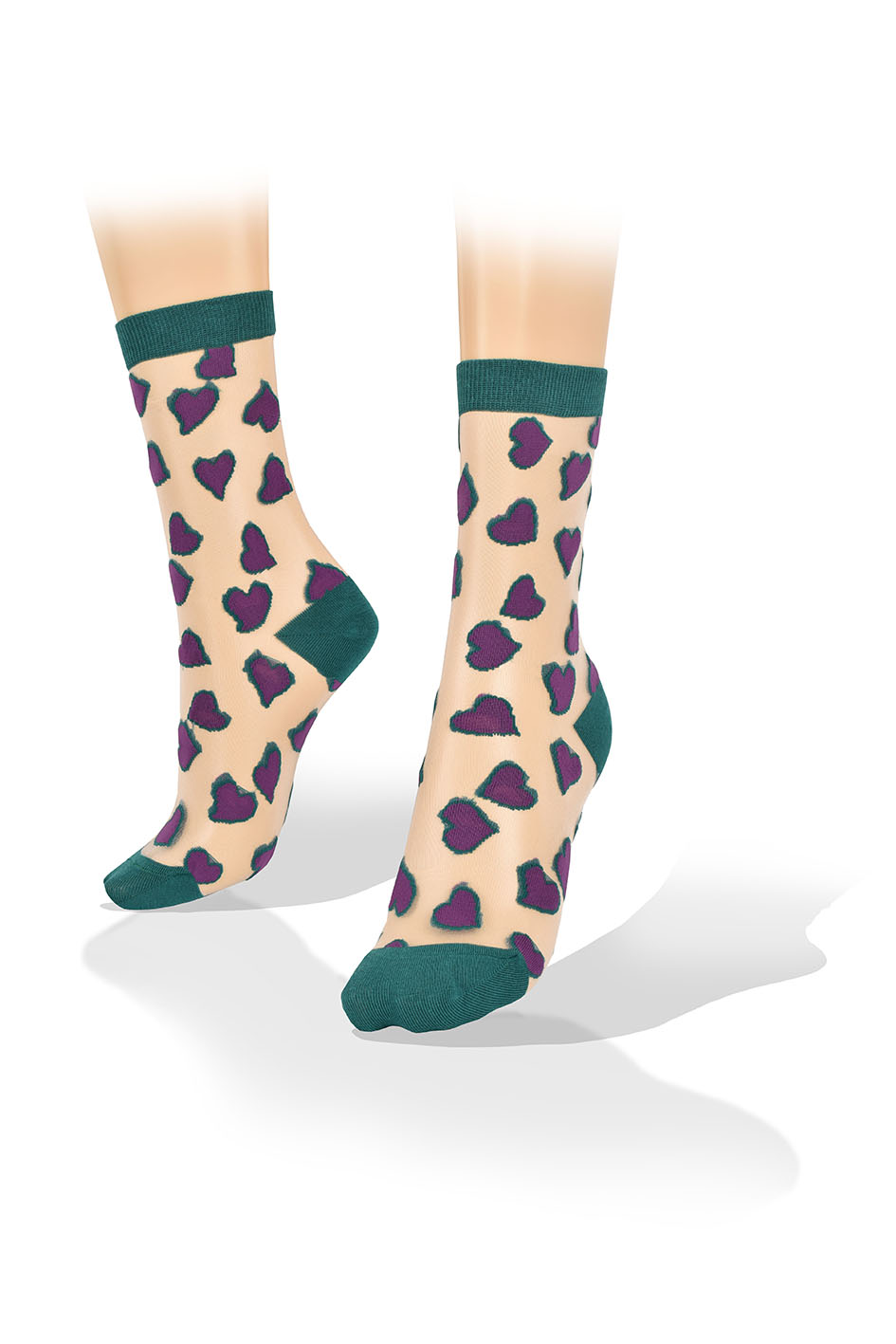 Medias Transparentes Corazones Violeta Borde Verde Aves del Plata™