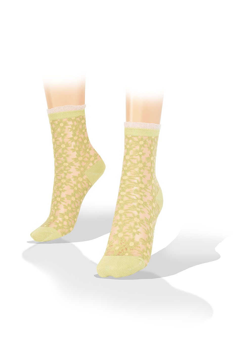 Medias Transparentes Flores Estrelladas Borde Amarillo Aves del Plata™