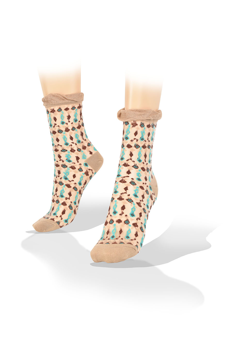 Medias Transparentes Mosaico Turquesa con Borde Beige Aves del Plata™