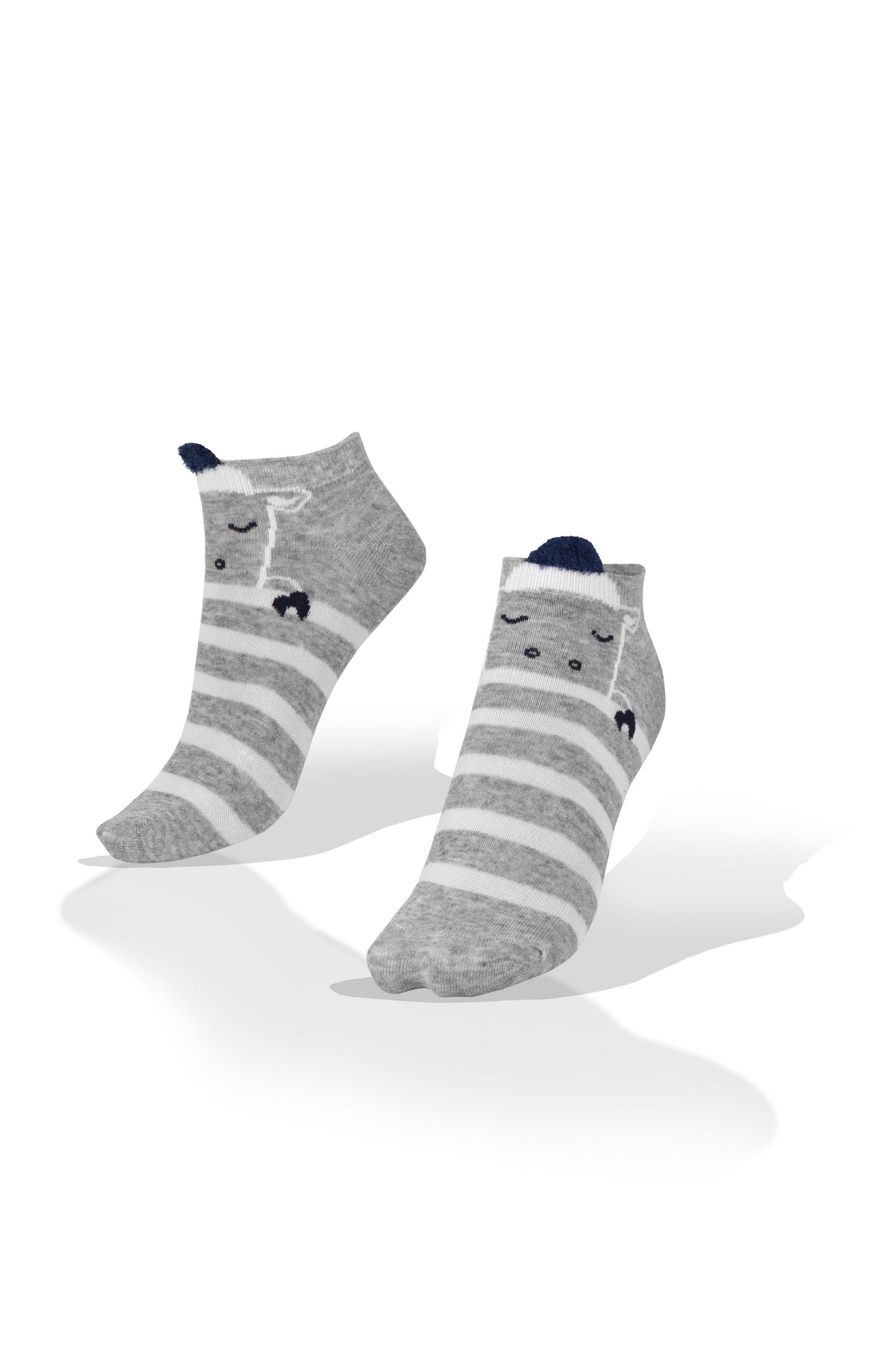 Soquetes Aves del Plata™ 3 Pares con Gato en Gris, Conejo en Azul y Caballo en color Salmon Rosado.