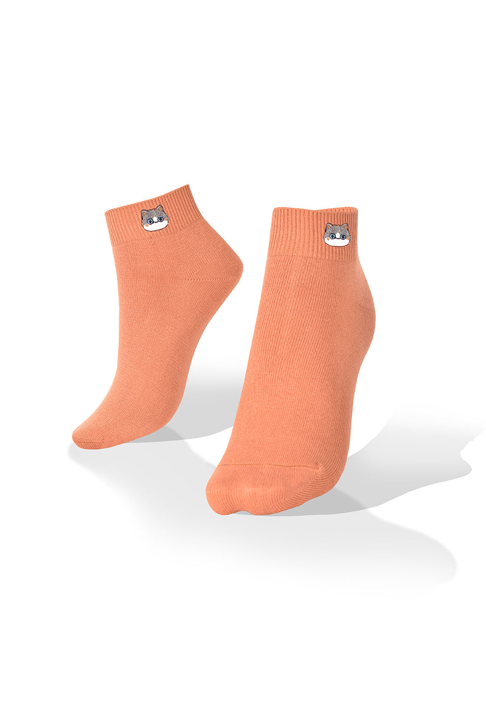Soquete Anaranjado con Cara de Gato Bordada Aves del Plata™