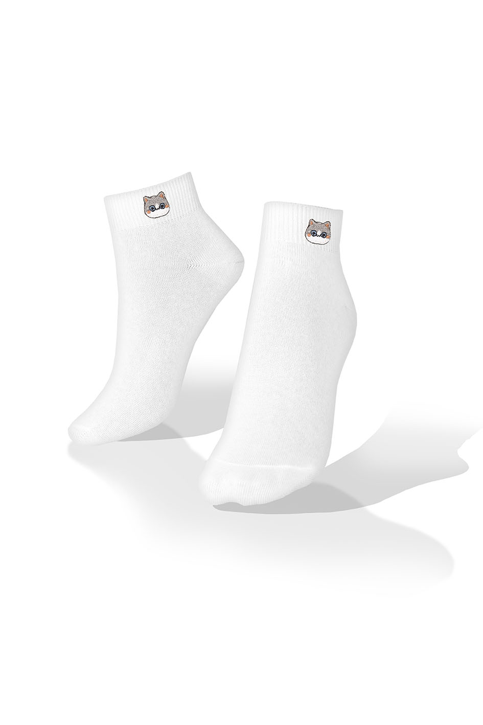 Soquete Blanco con Cara de Gato Bordada Aves del Plata™